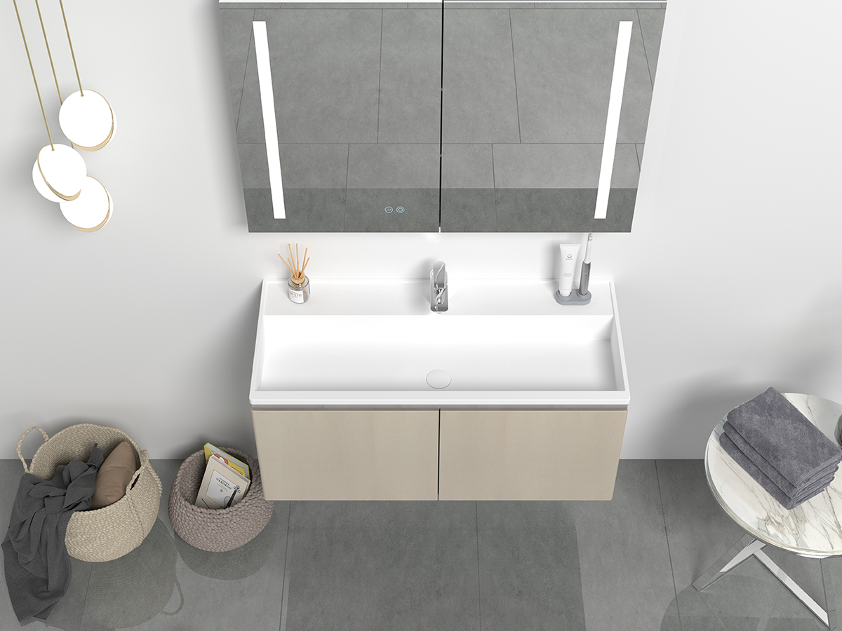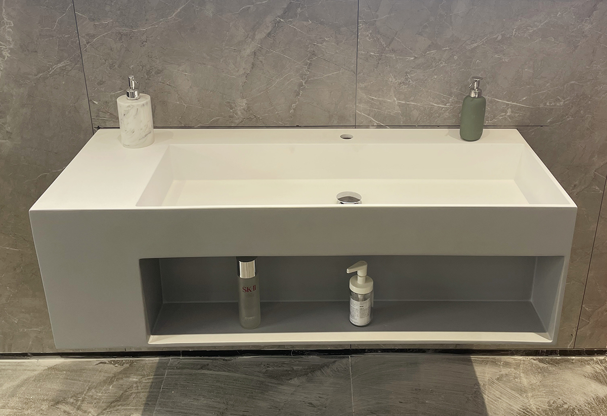 * Seamless corian stone sheet build the vanity body (More material options: plywood(HDF)/MDF/PVC)