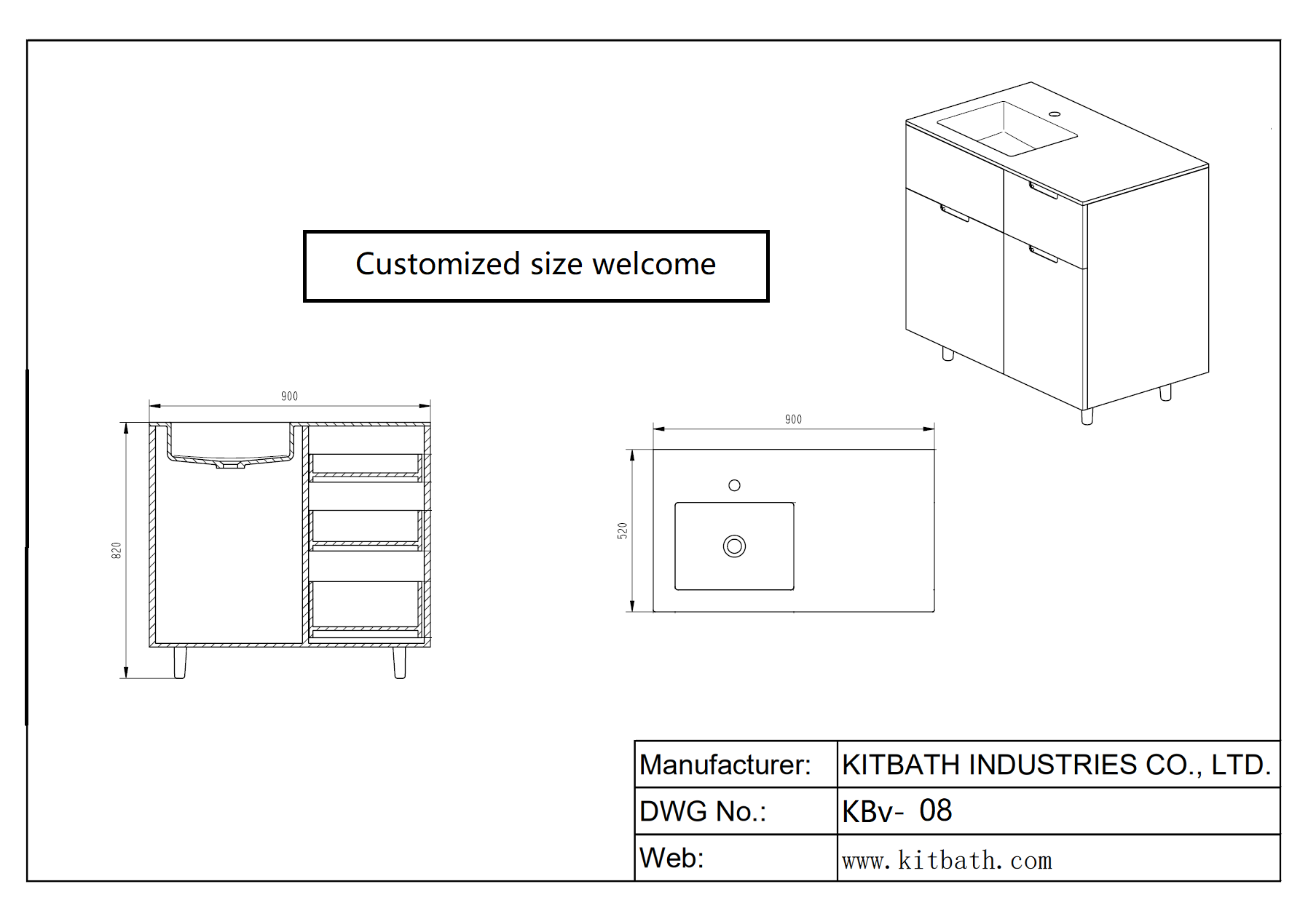 * Seamless corian stone sheet build the vanity body (More material options: plywood(HDF)/MDF/PVC)